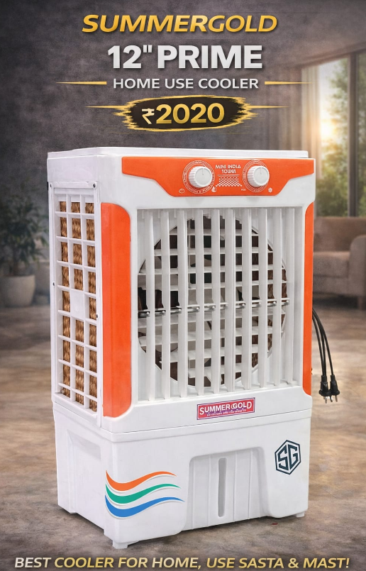 The SUMMERGOLD 12" PRIME is where affordability meets high-end performance. Known as the "Mini India Tower," this cooler is designed for the smart Indian consumer who wants effective cooling without a massive price tag. Priced at just ₹2020, it is the definition of value for money.
