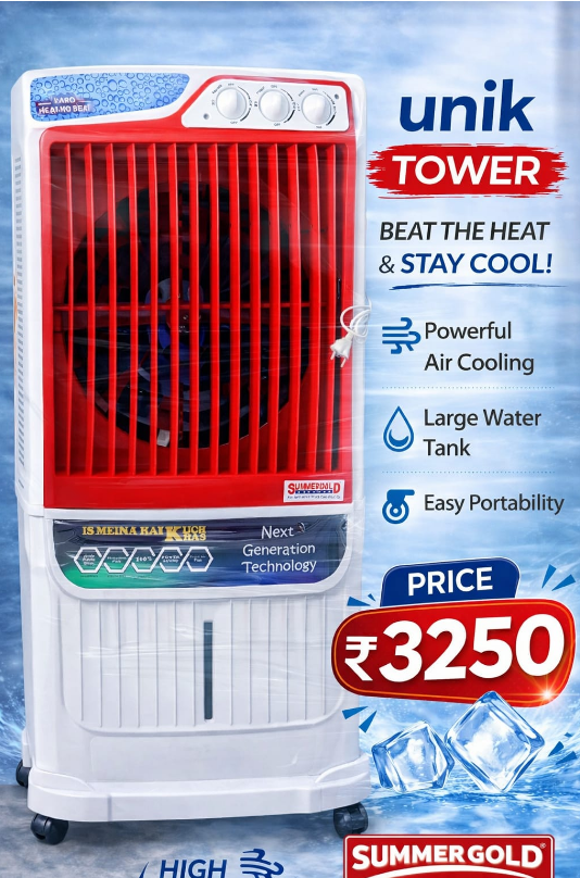 SUMMERGOLD UNIK Tower Cooler ek smart aur stylish cooling solution hai jo specially design kiya gaya hai bedroom, living room, office cabin aur small shops ke liye.
