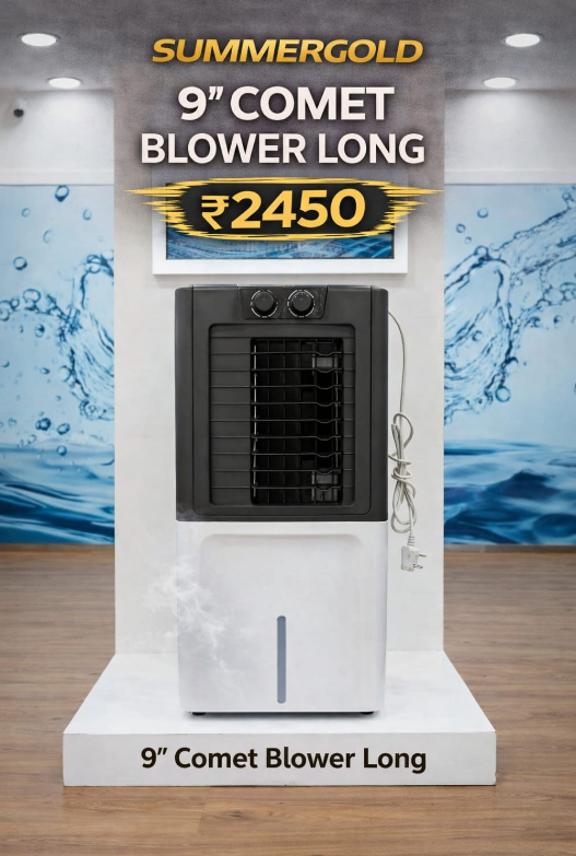 Experience superior airflow with the SUMMERGOLD 9-inch COMET Blower Long, designed for those who need powerful cooling in a compact yet extended body design. This upgraded “Long” model ensures better air circulation and improved cooling performance compared to standard blower models.