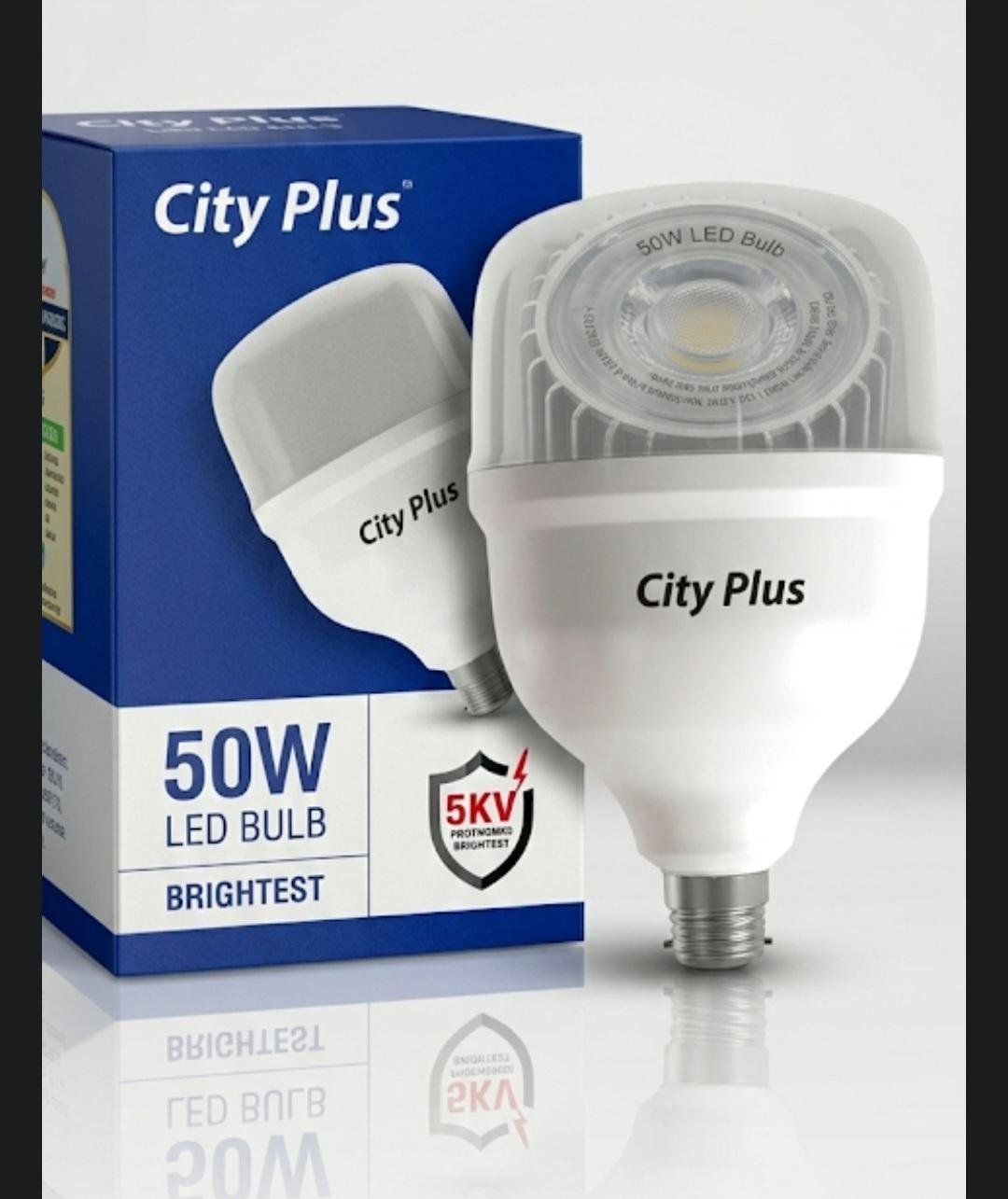 City Plus 50W LED Bulb delivers powerful high brightness with energy-saving performance. Designed with 5KV surge protection, it ensures safety from voltage fluctuations and provides long-lasting lighting for home, shop, office, warehouse, and outdoor use.