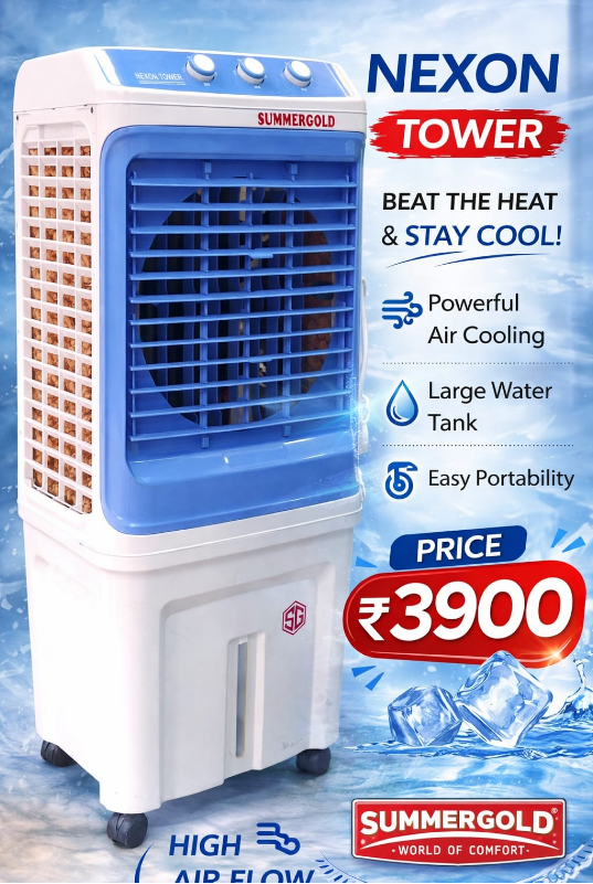 SUMMERGOLD ka NEXON Tower model premium segment ke customers ke liye design kiya gaya hai jo maximum airflow + modern design chahte hain.