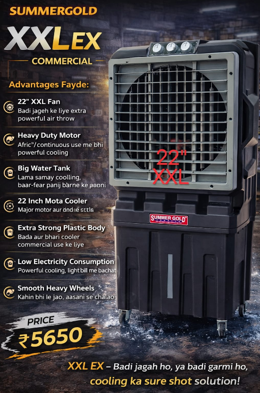 The SUMMERGOLD XXL EX Commercial Air Cooler is specially designed for large commercial spaces where normal coolers fail to deliver strong airflow.